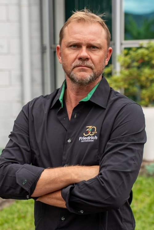 A Friedrich Distribuidora começou suas atividades no ano de 1995. Atualmente, a empresa conta com amplas e modernas instalações que contemplam o espaço físico de 2.906m², o qual agrupa 2 pavilhões. Além disso, contamos com 17 carros para a Equipe de Vendas e 9 veículos de entrega (furgões/caminhões).
